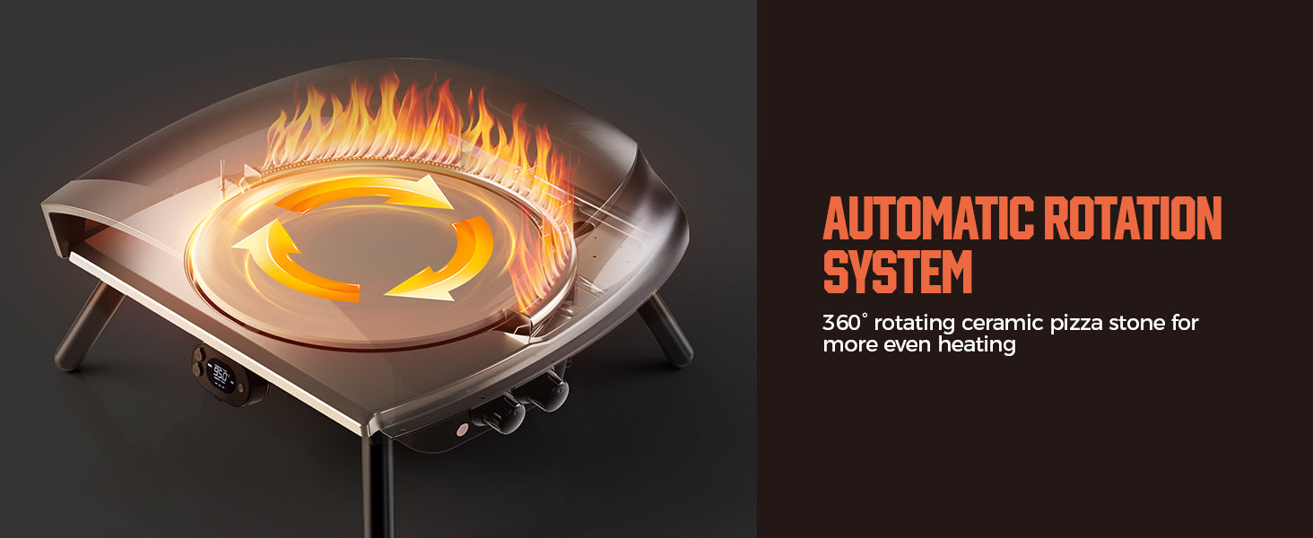 The built-in rotation system ensures uniform browning across the entire pizza, removing the need for manual turning and improving results for Neapolitan, high-hydration doughs, and more.